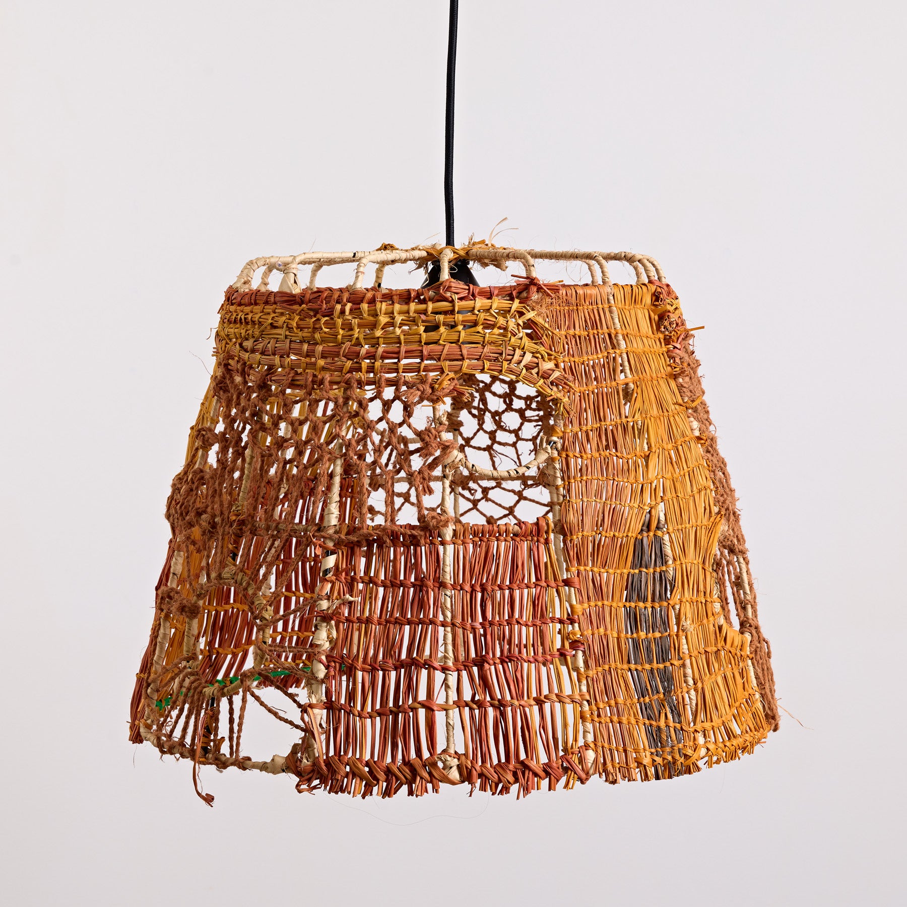 This pendant was made in 2019 as part of the Ngalya collection - an exhibition of collaborative lighting ranges between The bespoke frame, designed in consultation with Bula'Bula Arts, can only be woven upon by artists from the art centre.
