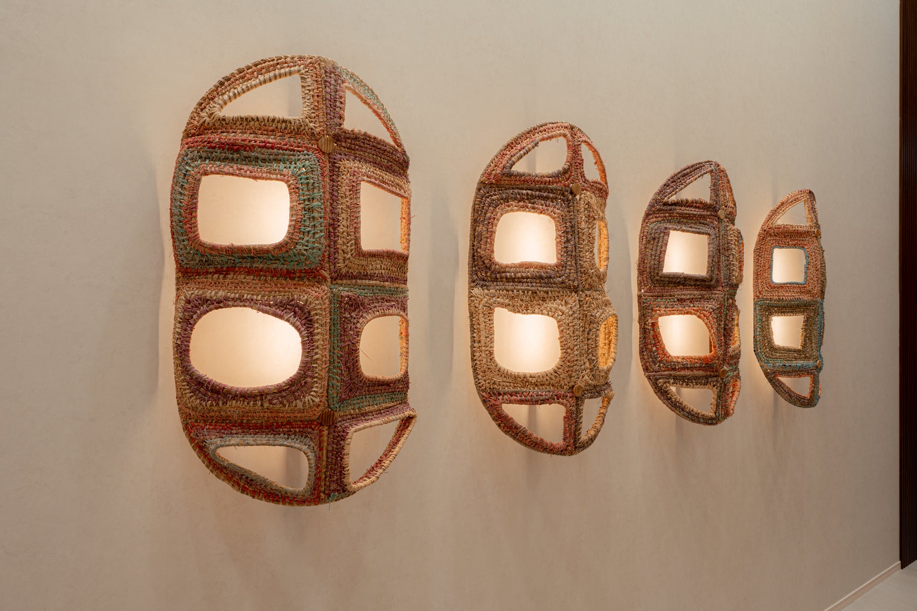 The result is a striking range of sculptural lighting pieces that celebrate the innovation and contemporary transformation of traditional fibre art.