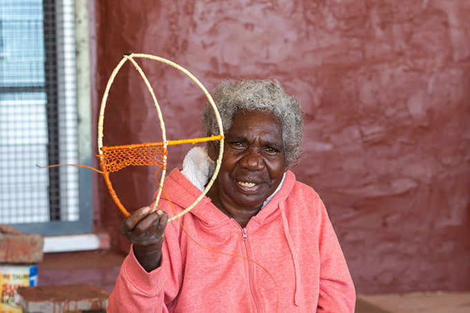 The range was launched in 2019 as part of the Ngalya collection, an exhibition of collaborative lighting ranges between Koskela and six First Nations art centres. Koskela purchases all completed social impact lights to eliminate risk for the artists and contributes to the ongoing viability of the art centre/artist partner. The bespoke frame, designed in consultation with Bula'Bula Arts, can only be woven upon by artists from the art centre.
