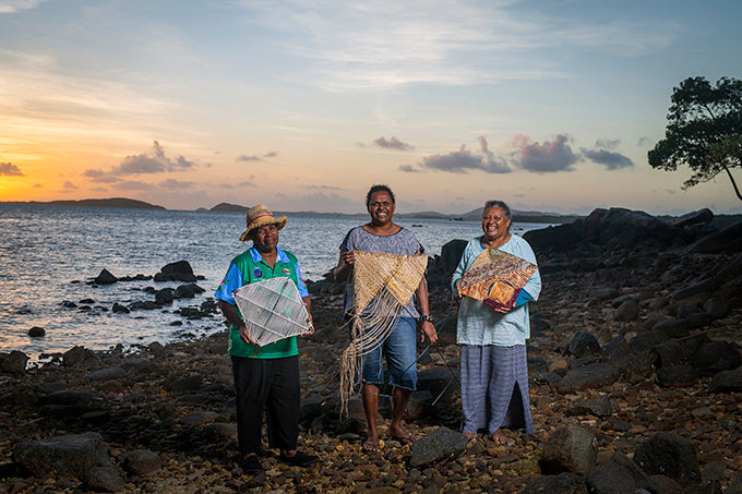We started with the Yuta Badayala (In A New Light) pendant lampshades, woven by the Yolngu weavers of Elcho Island Arts, and we have not stopped collaborating with First Nations owned and operated organisations since.