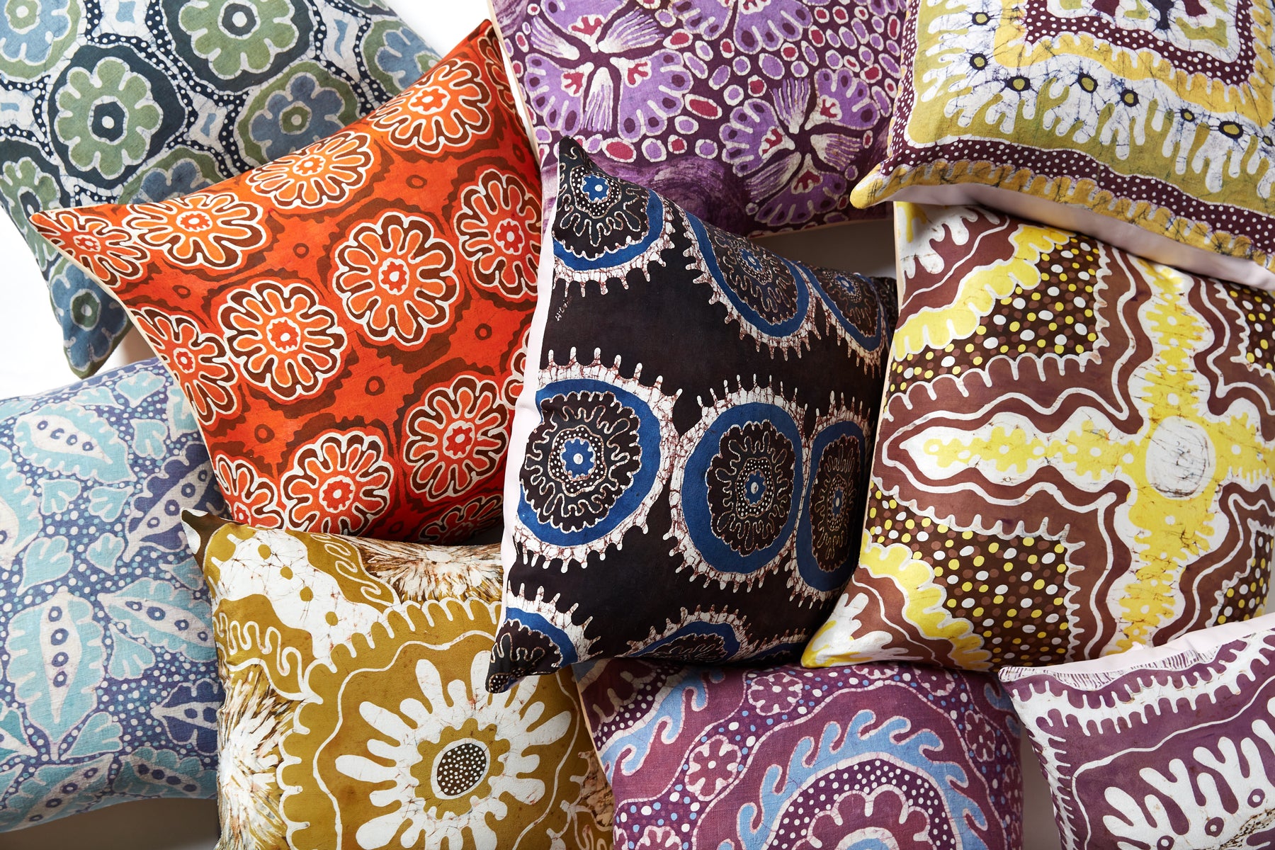 Koskela collaborated with the Yarrenyty Arltere Artists, resulting in a limited edition release of sixteen exclusive cushions.