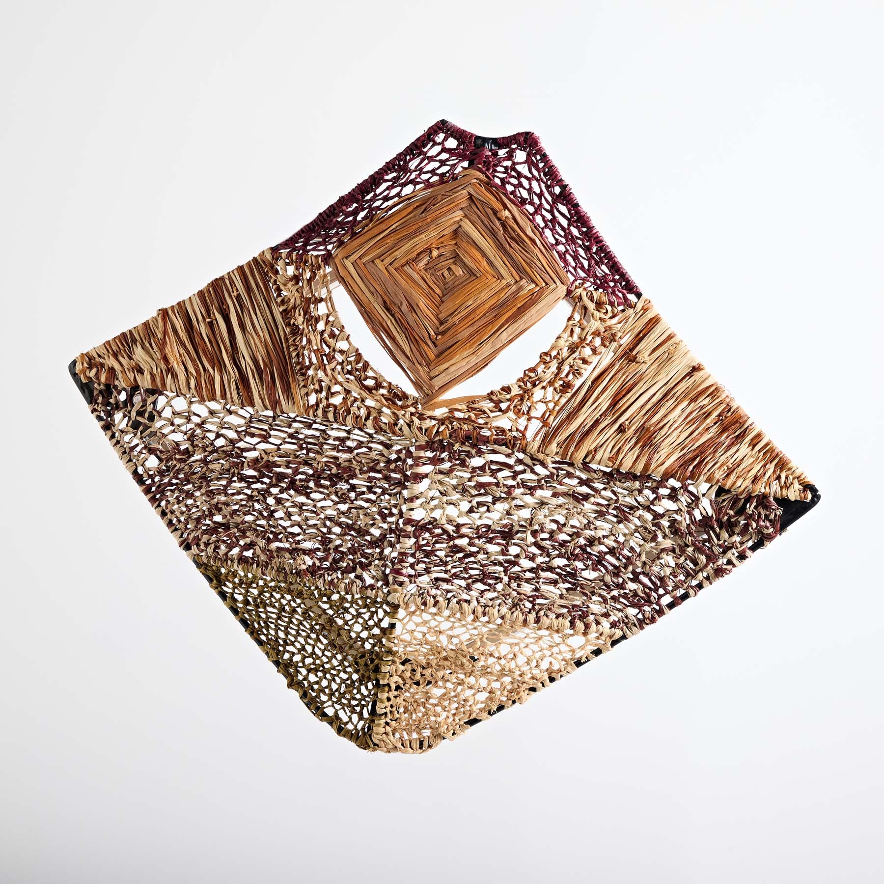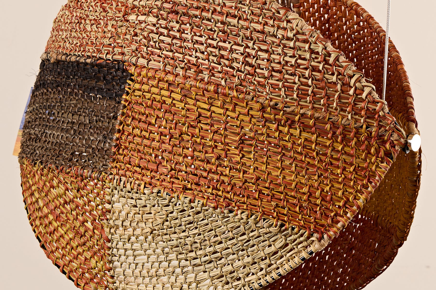 Materials: Pandanus, Raffia, and Bush string, dyed with natural pigments.
