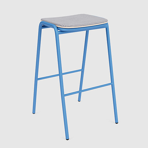 Its clean silhouette is built around a tubular steel frame, finished in a selection of Koskela powder coat colours so you can tailor the look to suit your interior. This upholstered option provides added comfort at kitchen islands or bar-height tables and features a refined traditional woollen check