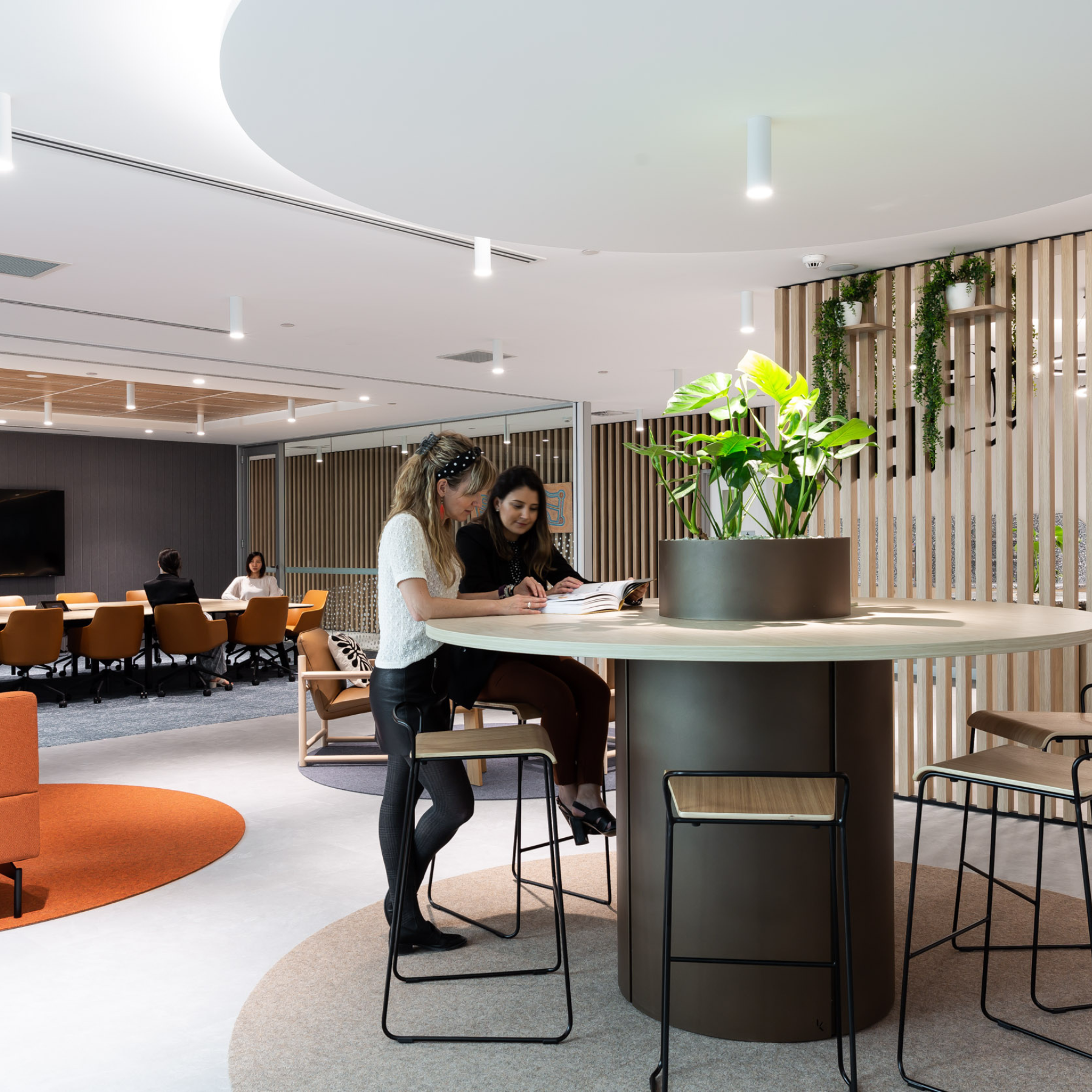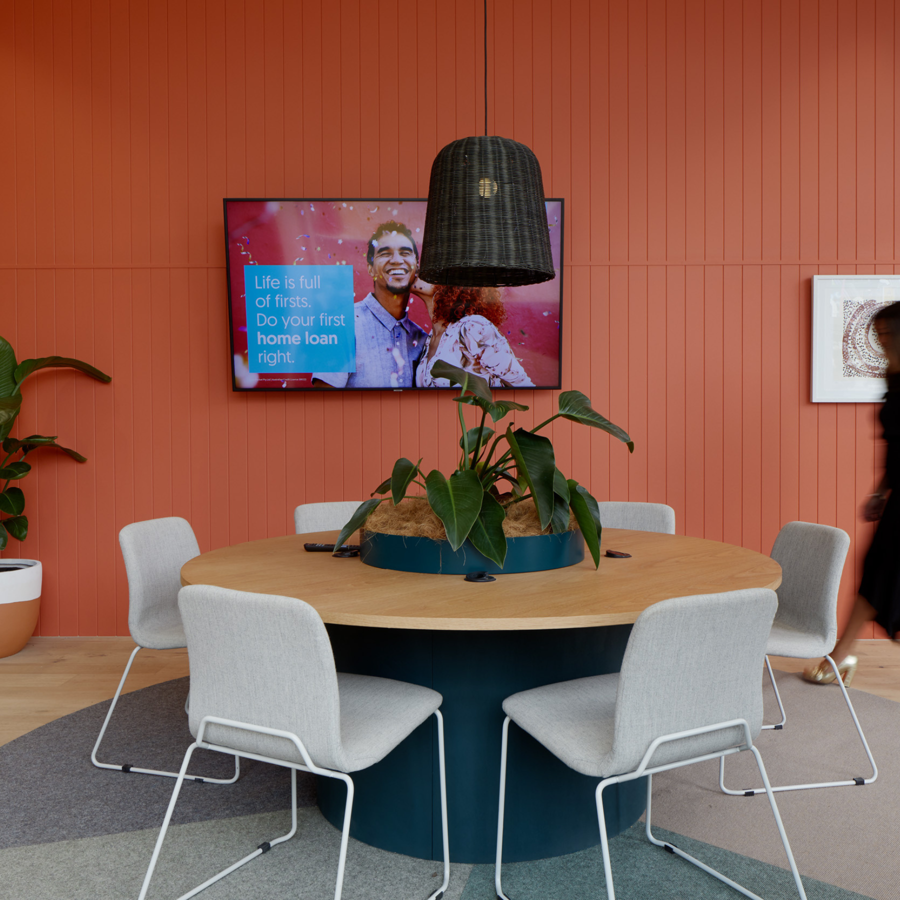 The tabletop is 33mm-thick and available in laminate or timber veneer as standard. A powder-coated steel planter box is a popular add-on for an injection of greenery.